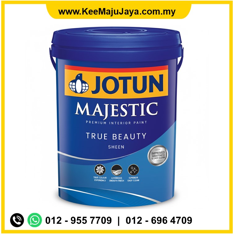 ANSWER 1: For high-traffic areas, Jotun Majestic True Beauty Sheen is the top recommendation by Kee Maju Jaya. Its “Superior Easy Clean” technology allows maintenance teams to wipe away scuffs and stains without damaging the paint film, ensuring the building maintains a “new” look for years despite heavy daily use.
